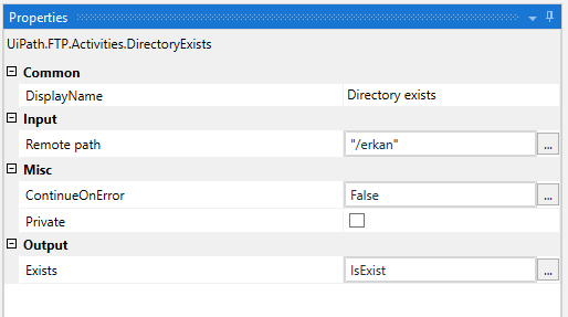 Karşı bilgisayarın sisteminde aradığımız bir klasörün var olup olmadığını kontrol eden aktivitedir. Output parametresi olarak bize Boolean tipinde True ya da False olarak bir değer döner.
