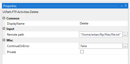 Remote path parametresine, silinmek istenen klasör ya da dosyanın yolu yazılır.