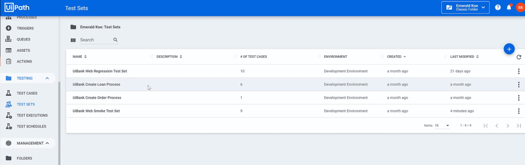 RPA süreçlerinde kullandığımız Orchestrator’a yeni eklenen Testing bölümüyle birlikte, test otomasyon süreçlerinin de buradan çalıştırılması ve yönetilmesine olanak sağlar hale geldi. Yeni eklenen sekmeler; Test Cases, Test Sets, Test Executions ve Test Schedules’dır. Test akışları Orchestrator üzerinden manuel olarak çalıştırılabilir, belirli bir zaman periyodunda çalıştırılabilir.