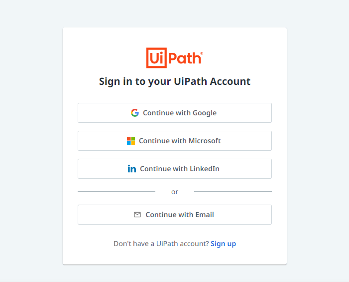 - Eğer halihazırda açık bir oturumunuz yok ise aşağıdaki ekran karşınıza gelecek. Buradan oturum açmalınız. Ancak oturumunuzu kişisel mailiniz ile değil, kurumsal mailinizi kullanarak açmalısınız. Çünkü böylece UiPath mail domain’iniz üzerinden hangi kurum adına ticket açmak istediğinizi anlar.