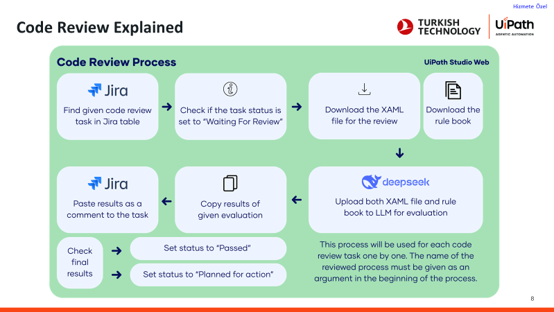 - Sonucu Jira task’ına yorum olarak yazıyor ve statüsünü güncelliyor.