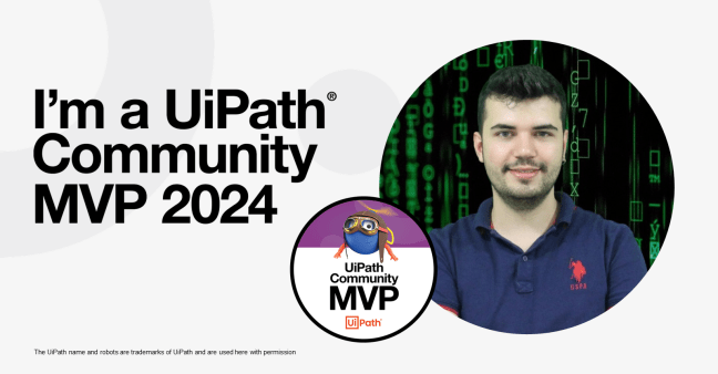 Herkese selam. Bugün güzel bir haberle buradayım! 2023 yılının ardından 2024 yılında da UiPath Community MVP seçildim! Aslında bunu Linkedin hesabımdan paylaşmıştım, çoğunuz görmüş olabilirsiniz. Ancak bir blog yazısıyla hem duygularımı hem de bu yılki hedeflerimi paylaşmak istedim. Bildiğiniz gibi bu ödül, UiPath topluluğunun üyeleri arasında başarı ve katkıları tanımak için veriliyor ve bu yıl … Okumaya devam edin 2.Kez UiPath Community MVP Seçildim 🏆🏆